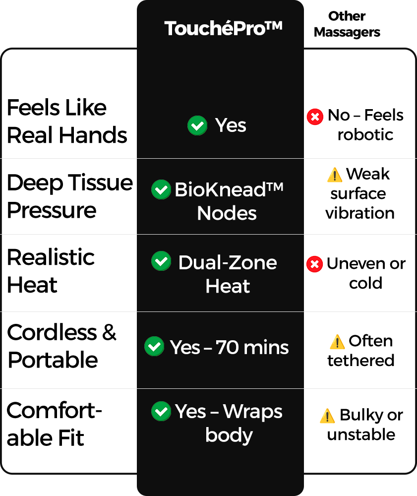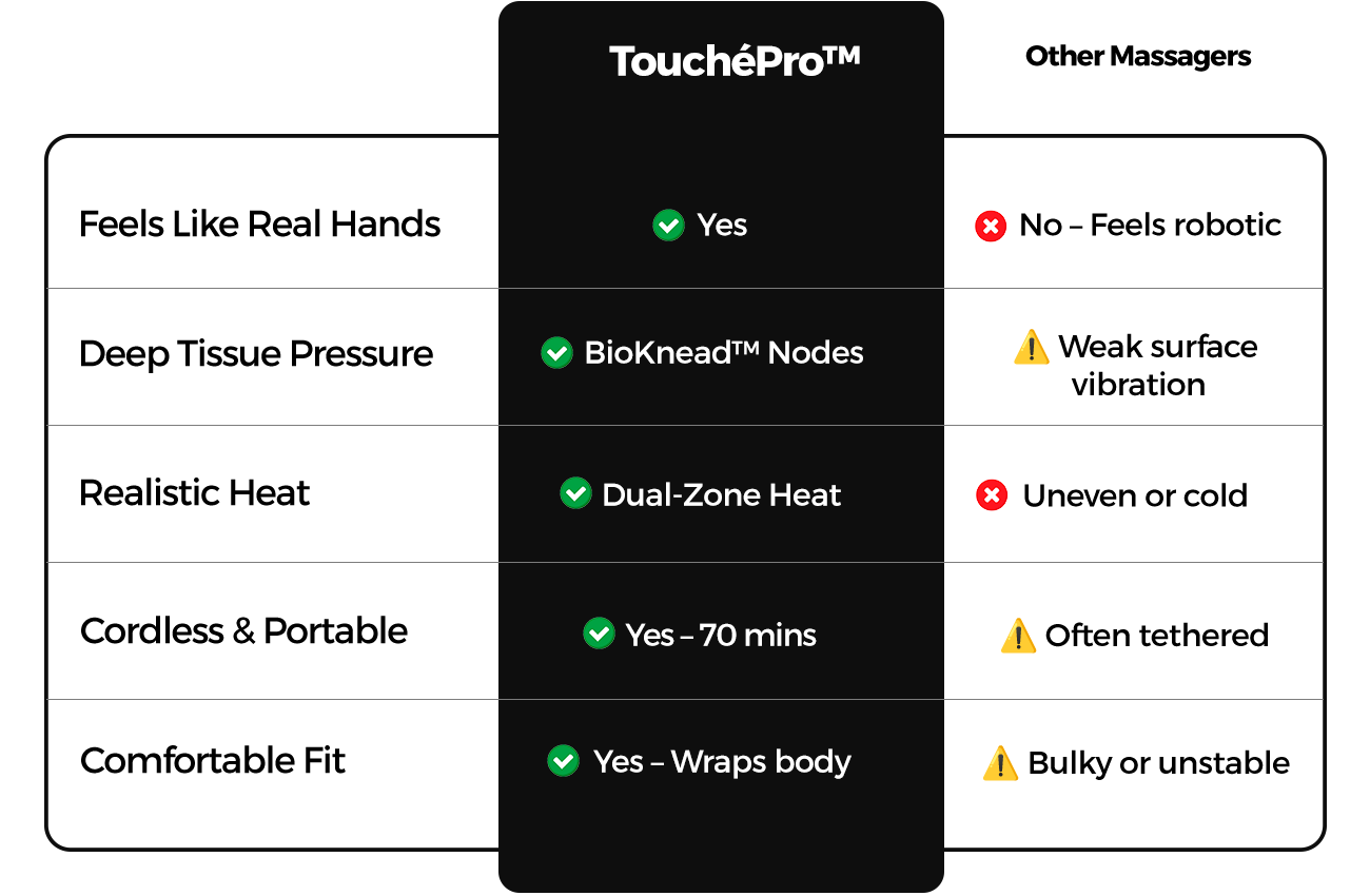 TouchéPro™ changes everything. It doesn’t feel like a machine. It feels like a massage — the kind you close your eyes and melt into.