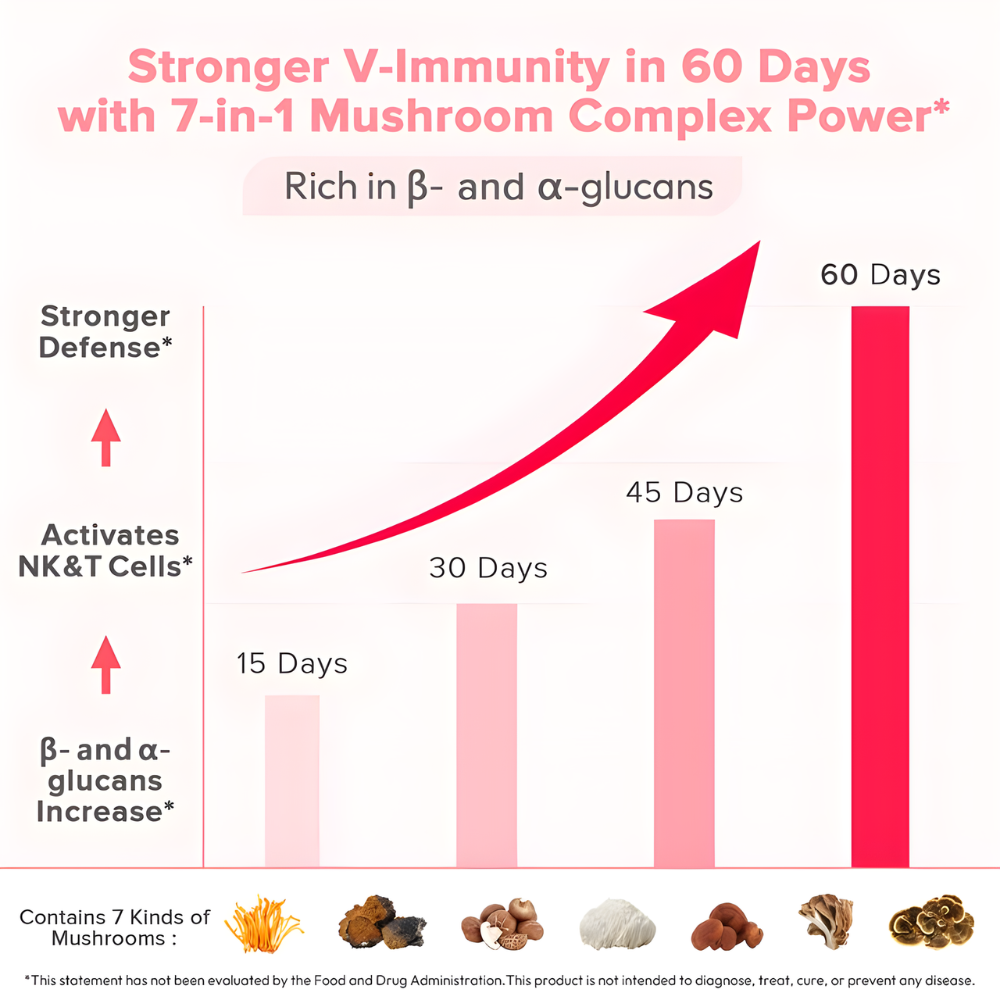 Our mushroom complex helps reinforce your body’s natural defenses, while our vaginal-specific probiotic strains help restore a healthy microbiome and balanced pH.